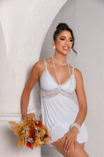 Imagine-se vestindo a Camisola Gênova O toque gelado da liganete Amni envolve sua pele como uma carícia suave, dando a sensação de estar nua, mas com toda a sensualidade e elegância que você merece.