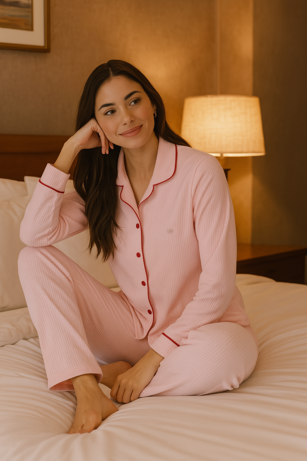 O pijama modelo Americano é perfeito para mulheres sofisticadas e que gostam de dormir bonitas só que sem perder o conforto.
