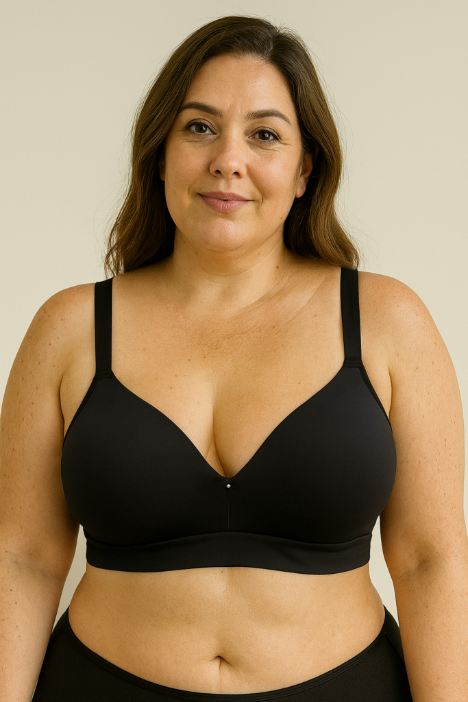 Conforto diário com nosso sutiã sem bojo de alta sustentação. Com laterais largas e alças largas, oferece segurança e conforto incomparáveis. A renda delicada adiciona elegância a esta lingerie branca, tornando-a uma peça funcional e versátil para todas as ocasiões. É a união perfeita de conforto e sustentação.